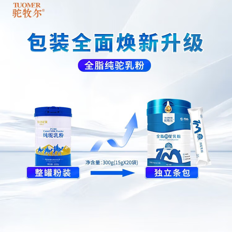 駝牧爾,源于天山最高峰托木爾峰諧音,是伊犁雪蓮乳業(yè)旗下自營駝奶品牌。駝牧爾駝奶品牌產(chǎn)品是采用公司有機牧場駱駝養(yǎng)殖基地雙峰駱駝所生產(chǎn)的鮮奶,結(jié)合科學先進的工藝精制而成。駝牧爾駝奶系列產(chǎn)品主要包括:純駝乳粉、初乳配方駝乳粉、益生菌配方駝乳粉、乳酸菌配方駝乳粉、學生配方駝乳粉、富硒高鈣駝乳粉、駝奶粗糧餅干等,系列產(chǎn)品被國家產(chǎn)品質(zhì)量安全與法信息中心評定為“質(zhì)量安全誠信品牌”。